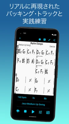 このアプリは、あなたのポケットに入る「音楽ライブラリ」であり「バーチャルバンド」そのものです。お気に入りの楽曲のコード譜を自由に作成、編集、整理し、必要に応じて印刷や共有が可能です。さらに、内蔵されたリアルなサウンドのピアノ(またはギター)、ベース、ドラムが奏でる伴奏に合わせて、実践的な練習を体験できます。スウィング、バラード、ジプシージャズ、レゲエ、ボサノバなど、51種類を超える多彩な伴奏スタイルから選択でき、アコースティックギター、ローズピアノ、コントラバスといった様々な楽器の音色で自由にアレンジできます。あなたの演奏や歌声を伴奏と共に録音する機能も備え、自己分析と上達を強力にサポートします。