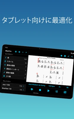 iReal Proは、あらゆるレベルのミュージシャンのスキル向上をサポート。リアルなバンドサウンドで練習し、お気に入りの曲のコード譜を作成・収集できる、多機能で使いやすいアプリです。あなたの完璧な演奏を後押しします。