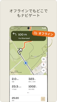 冒険の途中、視線を奪われることなく景色に没頭できるよう、komootの高精度音声ナビゲーションがあなたをガイドします。複雑な森の小径や起伏の激しいトレイルでも、的確な指示が耳に届くため、常に前方の道と向き合い、安全かつスムーズに進めます。さらに、電波の届かない山奥や通信が不安定な場所でも、komootのオフラインマップがあれば安心です。事前に計画したルートと高解像度の地形図が、どんな状況下でも確かな道案内を提供します。