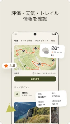 旅の目的地選びに迷ったら、komootコミュニティがおすすめする「ハイライト」をご覧ください。他のユーザーが見つけた絶景ポイントや隠れた名店、刺激的なシングルトラックなどがマップ上に表示され、新たな発見のヒントを与えてくれます。そして、あなた自身の素晴らしい体験もまた、komootで記録し、共有することができます。GPSログに写真や詳細情報を添えて思い出を鮮明に残し、仲間と感動を分かち合ったり、個人的な記録として大切に保管したり。スマートフォンからWear OSデバイスまで、あなたの冒険はあらゆるデバイスでシームレスに同期され、いつまでもあなたの手元にあります。