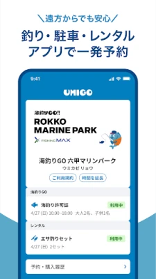 海釣りGOは、従来の煩わしさから解放され、安心して海でのレジャーを満喫できるUMIGOの革新的なサービスです。混雑や待ち時間とは無縁の、快適で計画的な釣り体験を提供します。スマートフォン一つで、釣り場の予約から必要な海釣り券の購入、さらには駐車場の確保まで、すべてが手軽に完結。1時間単位の柔軟な利用と明確な人数制限により、お客様は常にゆとりある環境で釣りに集中し、心ゆくまで自然と一体になれる時間をお過ごしいただけます。