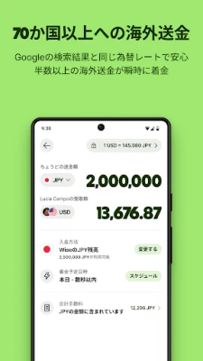 Wiseアプリは、国際的な資金移動を格段に簡素化します。70カ国以上への海外送金は、多くの場合20秒以内に完了し、Google検索結果と同じミッドマーケットレートで、隠れたコストなく届けられます。強固な2段階認証や生体認証、データの暗号化により、お客様の資産は常に安全に保護されます。さらに、Wiseデビットカードは160カ国以上で利用でき、現地通貨を保有していない場合でも、低額の手数料で自動両替し、スムーズな支払いや現金引き出しを可能にします。カードの一時凍結や解除もアプリから瞬時に行えるため、安心してお使いいただけます。