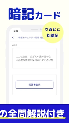 難解なテーマも、わずか3〜5分に凝縮された動画講義で、その核心をスムーズに把握できます。視覚的に分かりやすい解説により、専門知識が無理なく頭に入ってくるでしょう。さらに、厳選された重要語句を網羅した暗記カード機能で、試験頻出のキーワードを効率的に記憶。隙間時間を使って、いつでもどこでも確実な知識定着を図れます。