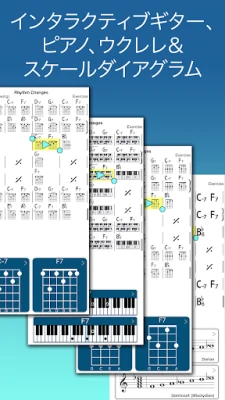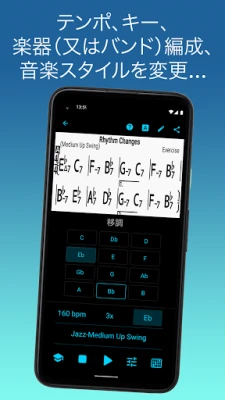 このアプリは、あなたのポケットに入る「音楽ライブラリ」であり「バーチャルバンド」そのものです。お気に入りの楽曲のコード譜を自由に作成、編集、整理し、必要に応じて印刷や共有が可能です。さらに、内蔵されたリアルなサウンドのピアノ(またはギター)、ベース、ドラムが奏でる伴奏に合わせて、実践的な練習を体験できます。スウィング、バラード、ジプシージャズ、レゲエ、ボサノバなど、51種類を超える多彩な伴奏スタイルから選択でき、アコースティックギター、ローズピアノ、コントラバスといった様々な楽器の音色で自由にアレンジできます。あなたの演奏や歌声を伴奏と共に録音する機能も備え、自己分析と上達を強力にサポートします。