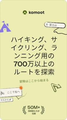 komootは、サイクリング、登山、ハイキング、ランニングを特別な冒険に変えるアプリです。コミュニティの役立つ情報やおすすめからインスピレーションを得て、便利なルートプランナーであなただけの理想の冒険を計画し、実現させましょう。自然を満喫する新しい方法を発見してください。