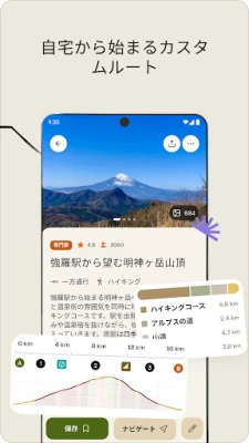 旅の目的地選びに迷ったら、komootコミュニティがおすすめする「ハイライト」をご覧ください。他のユーザーが見つけた絶景ポイントや隠れた名店、刺激的なシングルトラックなどがマップ上に表示され、新たな発見のヒントを与えてくれます。そして、あなた自身の素晴らしい体験もまた、komootで記録し、共有することができます。GPSログに写真や詳細情報を添えて思い出を鮮明に残し、仲間と感動を分かち合ったり、個人的な記録として大切に保管したり。スマートフォンからWear OSデバイスまで、あなたの冒険はあらゆるデバイスでシームレスに同期され、いつまでもあなたの手元にあります。