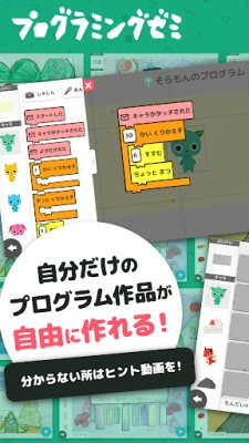 「プログラミングゼミ」の最大の特長は、ビジュアルプログラミングという手法で、複雑なコードを覚えることなく、ブロックをつなげるだけで簡単にプログラムを作成できる点です。基礎から応用まで、段階的に学べるように工夫されており、ヒント動画を見ながら自分のペースで学習を進められます。また、カメラ機能を使って自分で描いた絵をアプリに取り込み、プログラミングで動かすことで、世界に一つだけの動くアート作品を生み出すことも可能です。作った作品は友達と共有したり、他のユーザーの作品からインスピレーションを得て、さらに高度な創作に挑戦したりと、無限の創造性を刺激する機能が満載です。