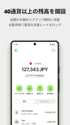 Wiseアプリは、国際的な資金移動を格段に簡素化します。70カ国以上への海外送金は、多くの場合20秒以内に完了し、Google検索結果と同じミッドマーケットレートで、隠れたコストなく届けられます。強固な2段階認証や生体認証、データの暗号化により、お客様の資産は常に安全に保護されます。さらに、Wiseデビットカードは160カ国以上で利用でき、現地通貨を保有していない場合でも、低額の手数料で自動両替し、スムーズな支払いや現金引き出しを可能にします。カードの一時凍結や解除もアプリから瞬時に行えるため、安心してお使いいただけます。